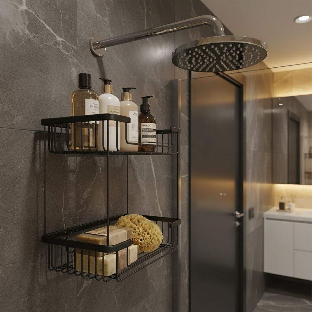 Gelince Haber VerDefne Banyo 15x25 İkili Şampuanlık Sabunluk Süngerlik Siyah Renk (192 1525 S)