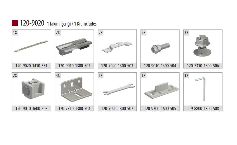 Duvar yüzeyine montaj için ray profili bağlantı aparatı mevcuttur