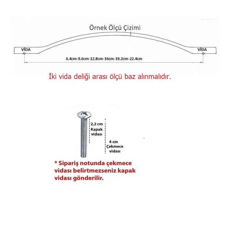 Ürün Uzunluğu, ürün adında belirtilmiştir. (iki vida deliği arası mesafe)