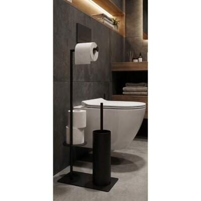 Gelince Haber VerDefne Banyo Akasya Yedekli Kağıtlıklı Klozet Fırçası Siyah Renk (60 40 S)