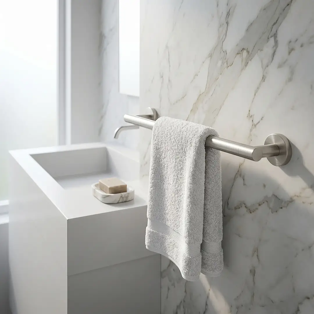 Geniş Asma Alanı: Uzun yapısı ile büyük banyo havlularının katlanmadan asılmasına olanak tanır, böylece havluların hava almasını ve daha hızlı kurumasını sağlar.