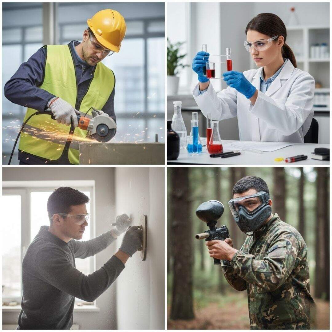 -İnşaat alanlarında, kimyasal laboratuvarlarda, tadilat çalışmalarında, paintball oynarken veya DIY projelerinde, delme, kaynak yapma, testere ve bileme için esnek kullanım olanakları