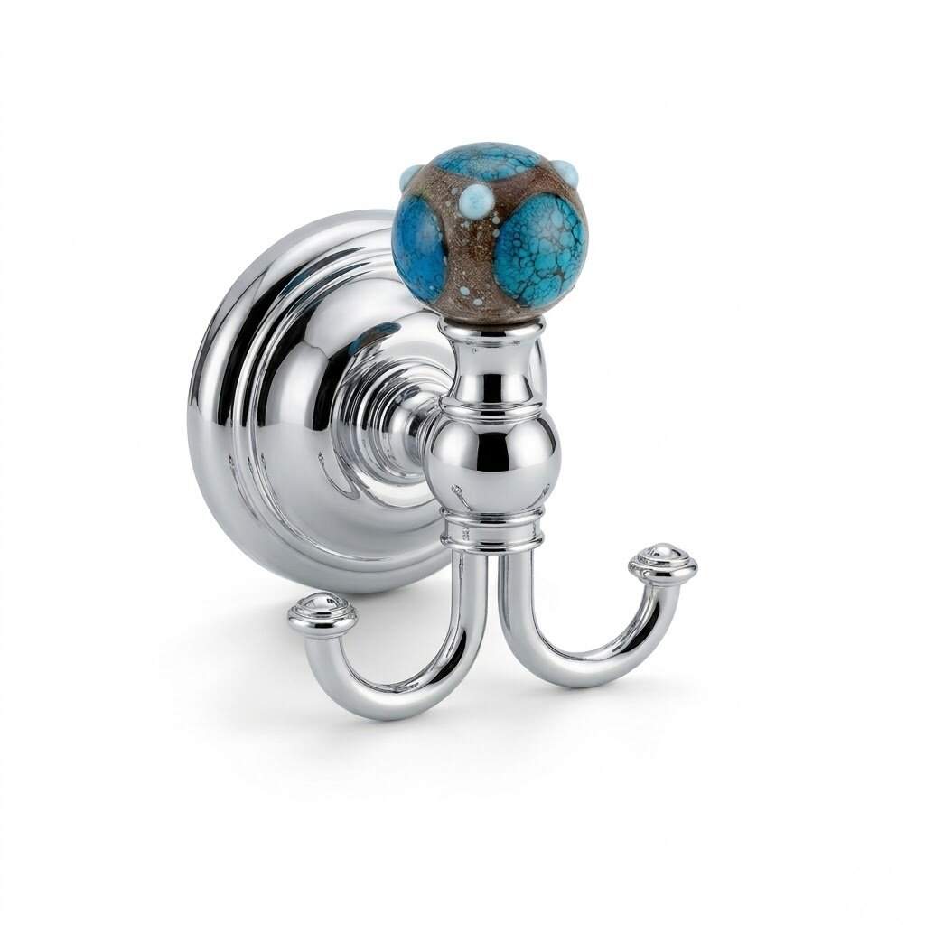 Gelince Haber VerGedy Murano İkili Bornoz Askısı Turkuaz/Krom (A.1IBB.MU08/CR)
