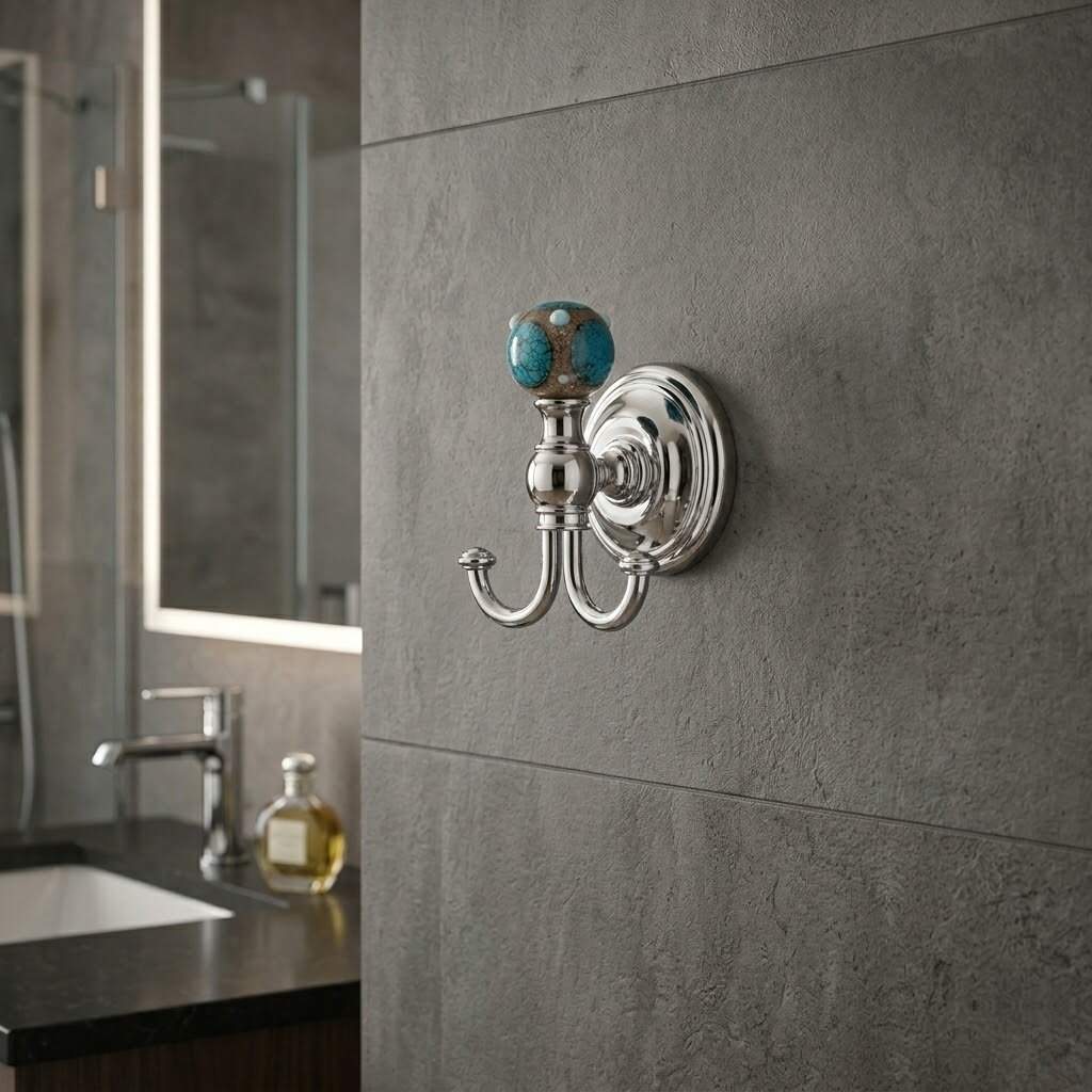 Banyonuzda İtalyan estetiğini ve fonksiyonelliği bir araya getirin! Gedy Murano serisi, canlı renk geçişleri ve modern hatlarıyla banyo dekorasyonunuza prestijli bir dokunuş katıyor. Turkuazın ferahlatıcı enerjisi ile kromun parlak şıklığını birleştiren bu ikili askı, hem bornozlarınız hem de havlularınız için sağlam ve estetik bir çözüm sunar.