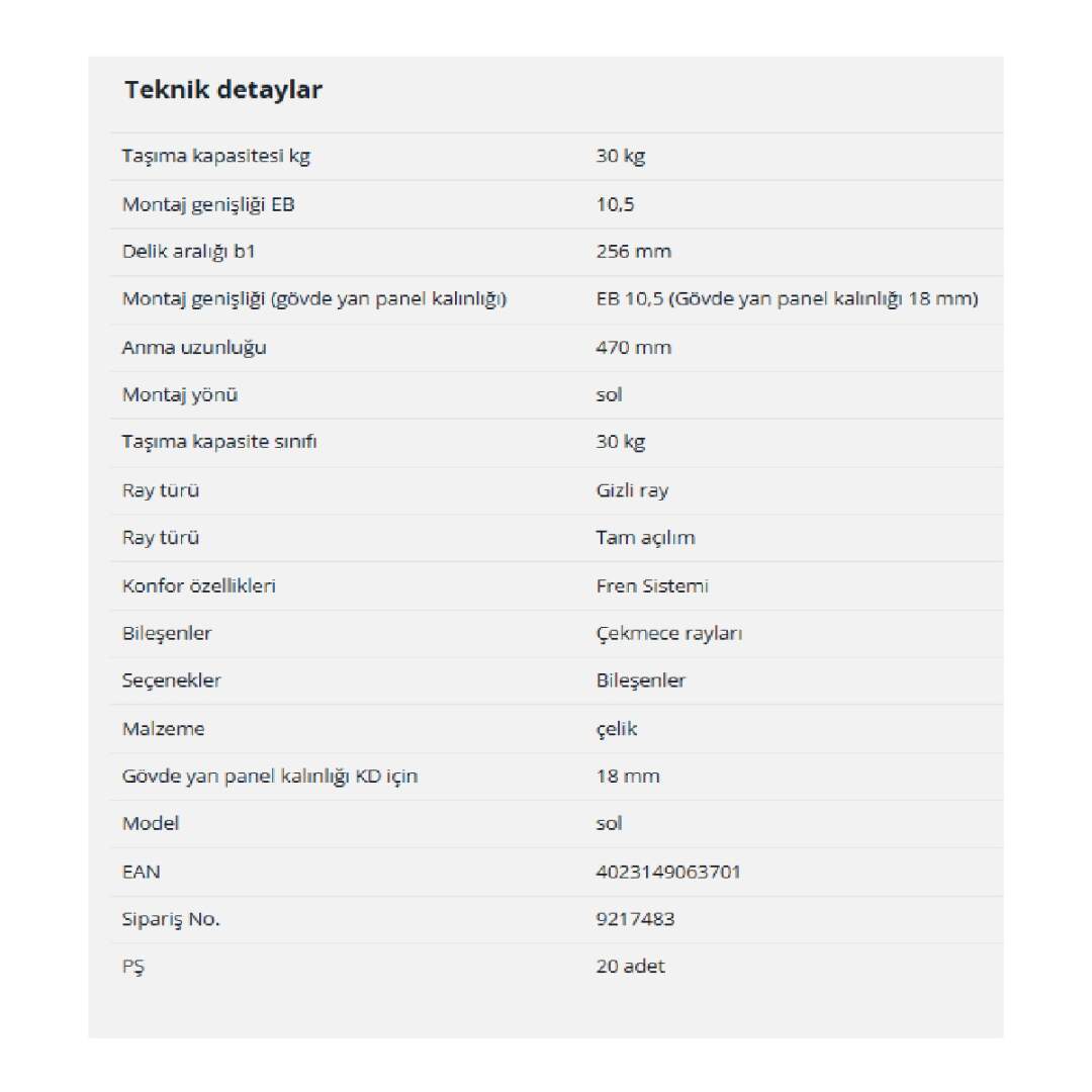 Hettich Atira Tam Açılım Frenli Ray 47mm Sol(9217483)
