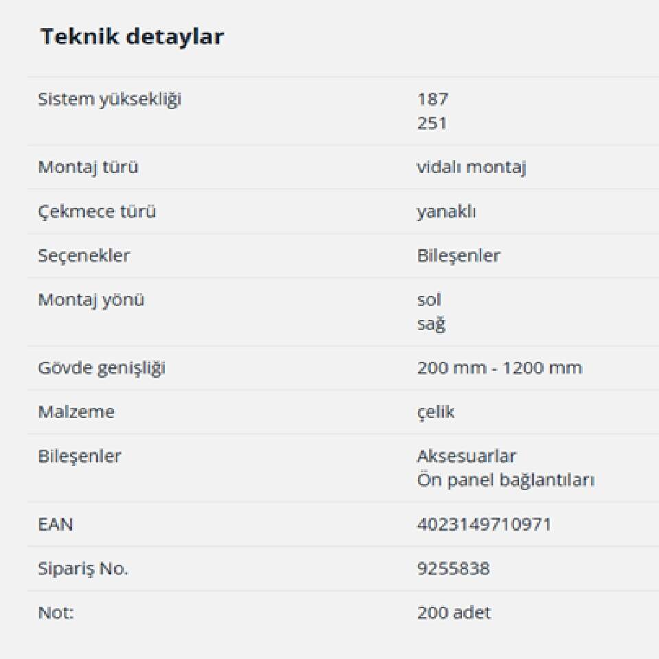 Hettich AvanTech You Kasa Ön Panel Bağlantısı 187mm Vidalı Montaj (9255838)