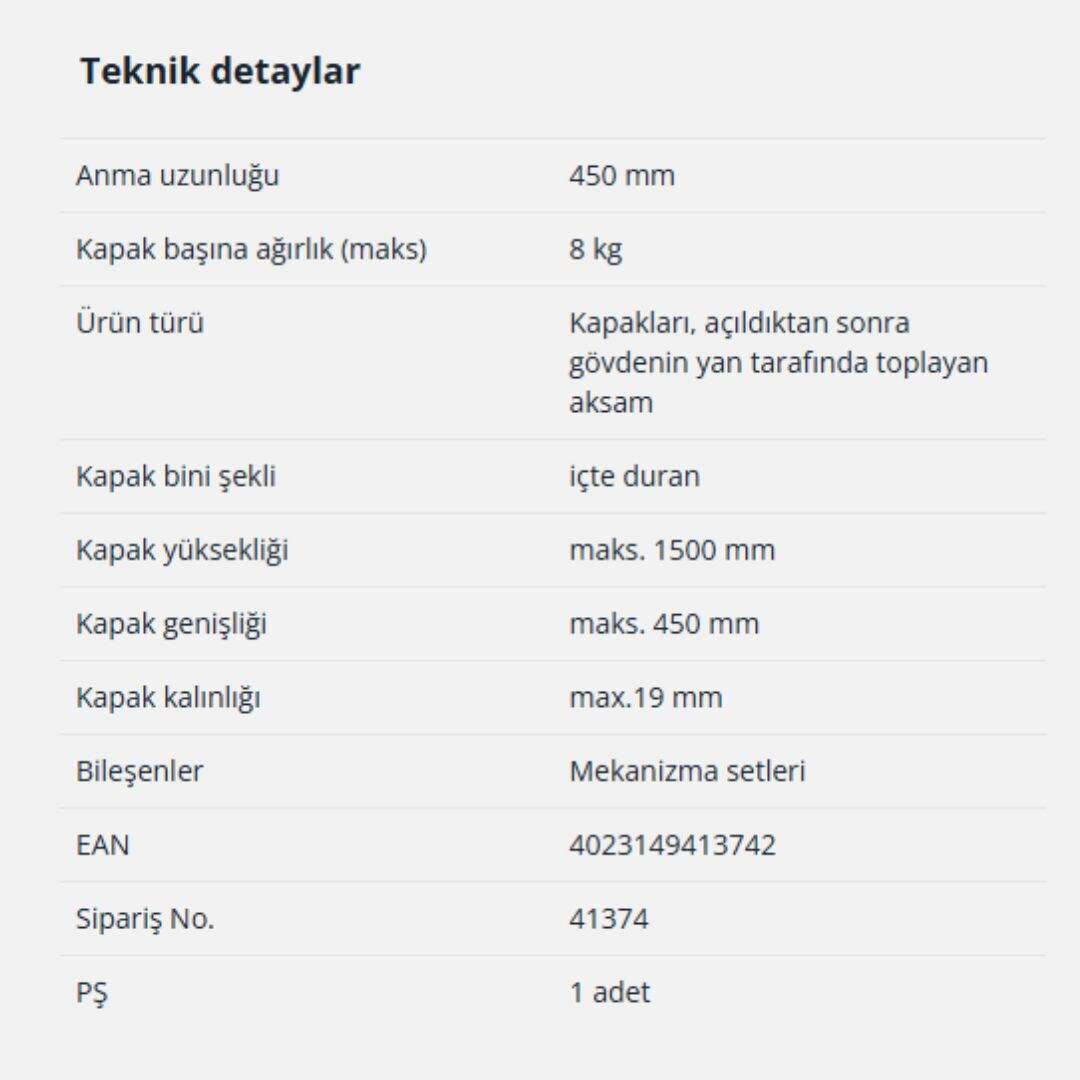 Gelince Haber VerHettich Döner Sürgü Kapak Sistemi KA 5740 / 450 mm (41374)