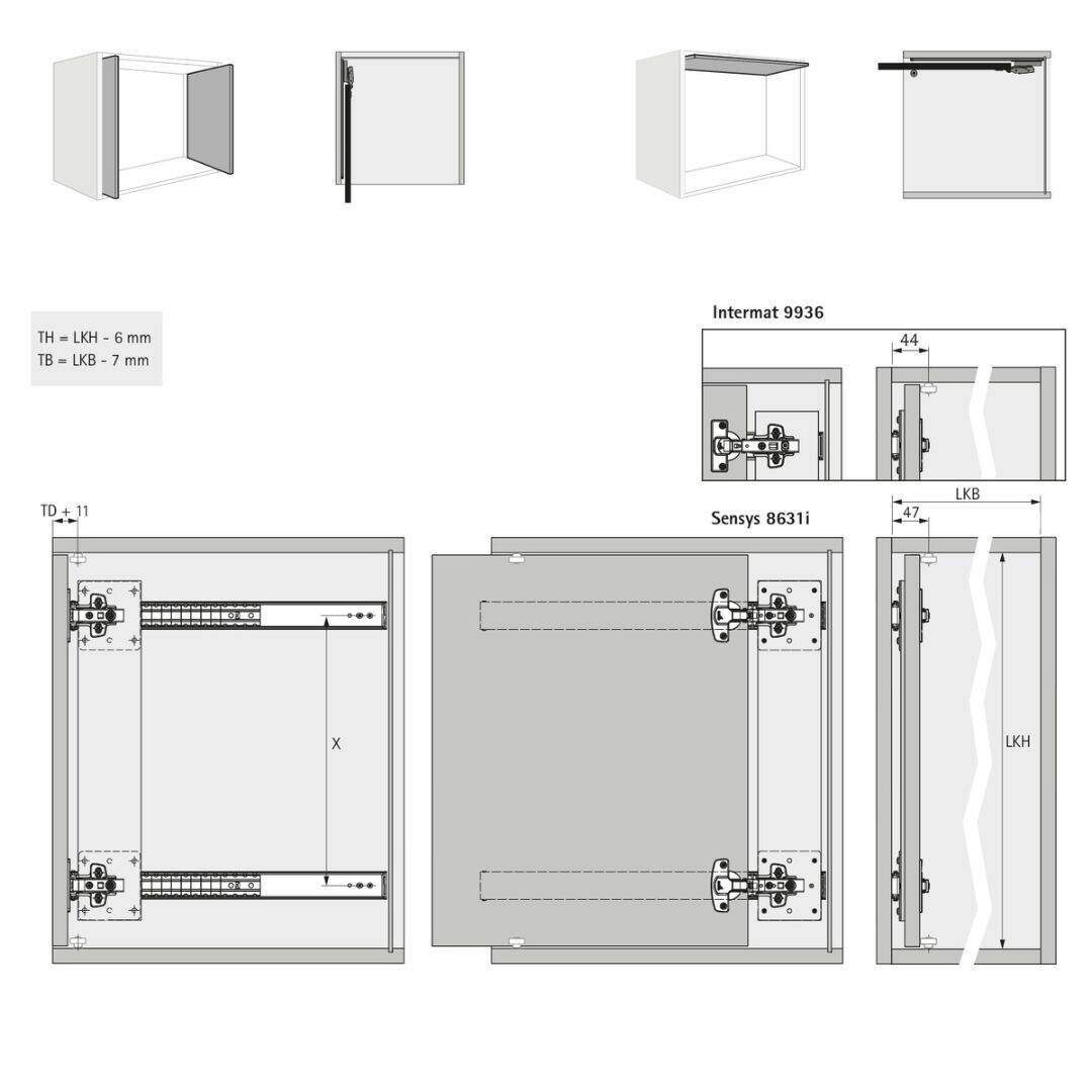 *Lütfen gizli menteşeleri ve montaj plakalarını ayrı olarak sipariş edin.