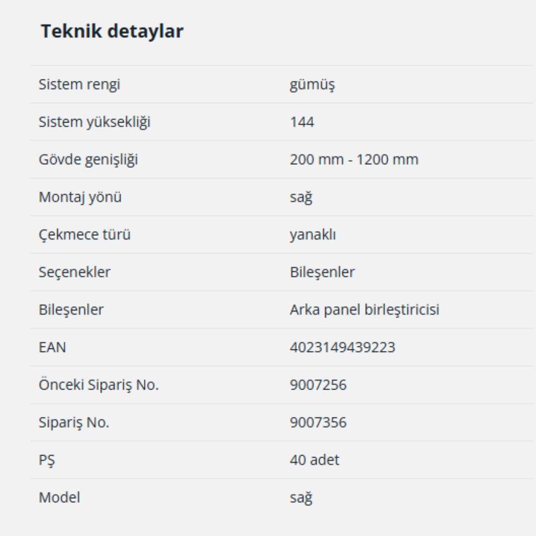 Hettich InnoTech Atira Arka Panel Birleştirici 144 mm Gri Sağ (9007356)