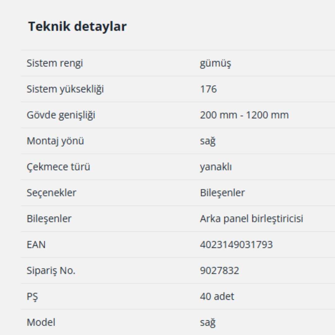 Hettich InnoTech Atira Arka Panel Birleştirici 176 mm Gri Sağ (9027832)