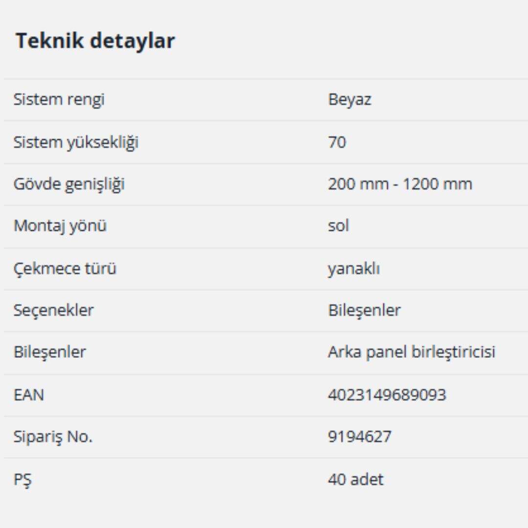 Hettich InnoTech Atira Arka Panel Birleştirici 70 mm Beyaz Sol (9194627)