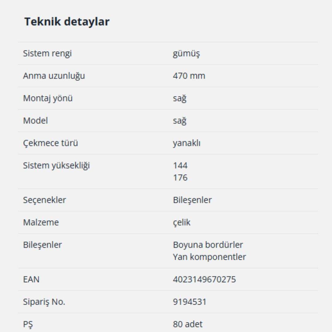 Hettich InnoTech Atira Bordür Çubuğu 470mm Gri Sağ (9194531)