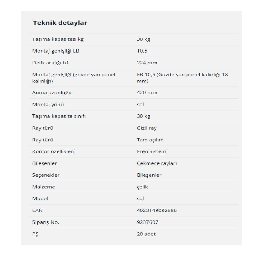 Blum Antaro 50cm Sağ Sol Gri Yanak (378M5002SA)