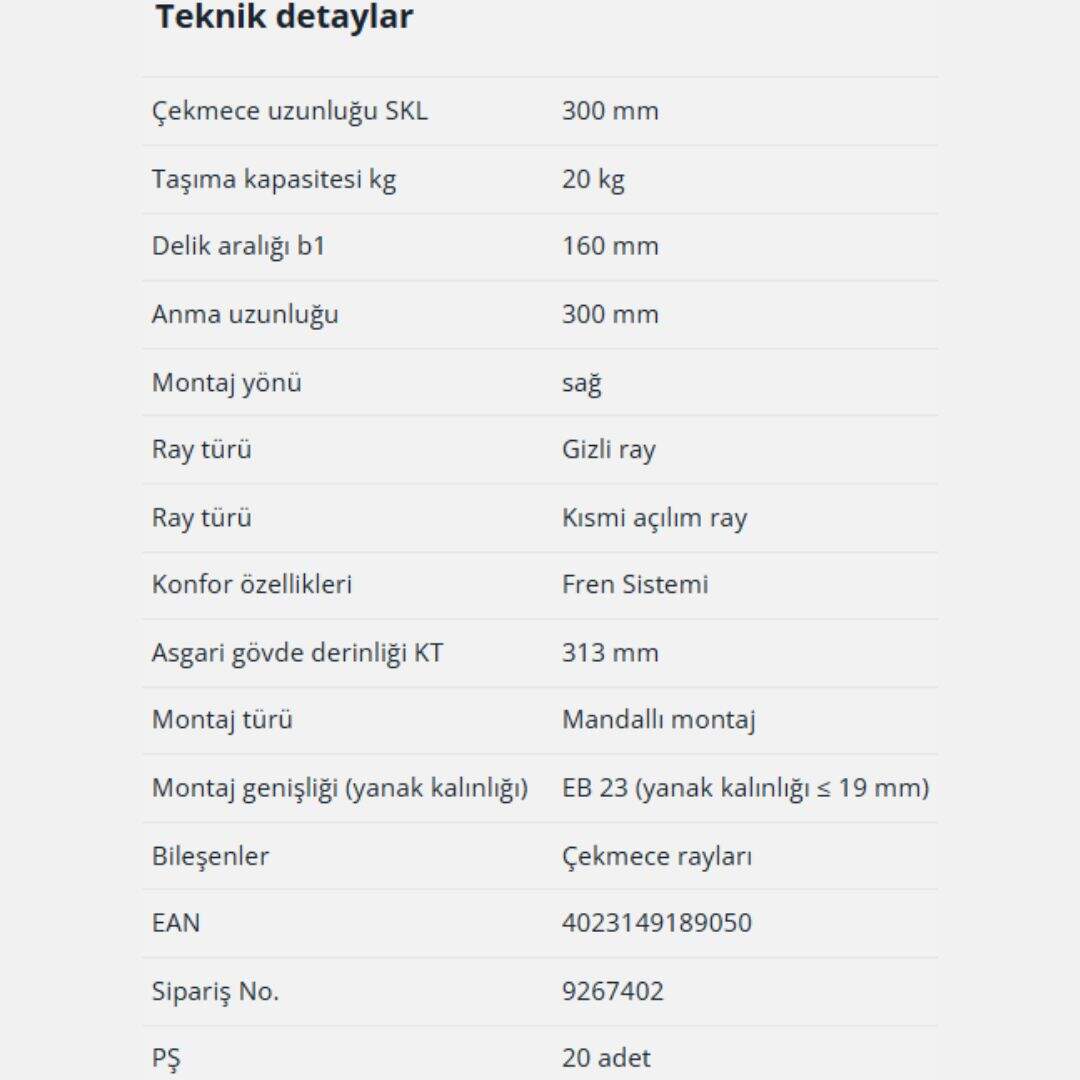 Hettich Quadro Kısmi Açılım Frenli Ray 30 cm Sağ (9267402)