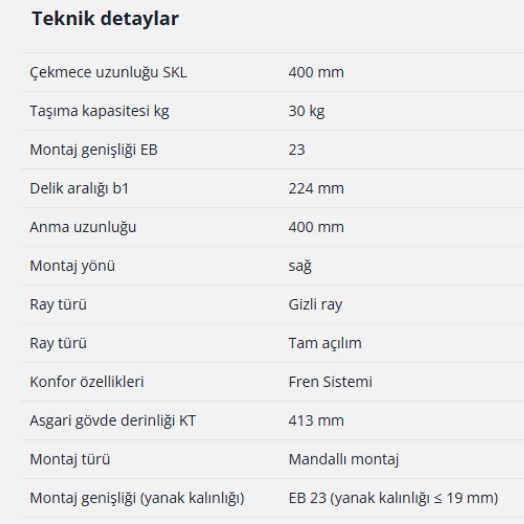 - Yanak kalınlıkları azami 19 mm olan çekmeceler için uygundur