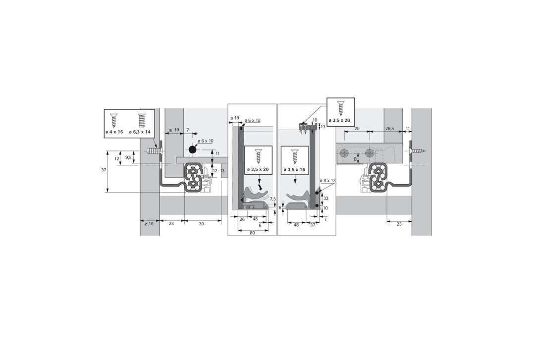 - Yanak kalınlıkları azami 19 mm olan çekmeceler için uygundur