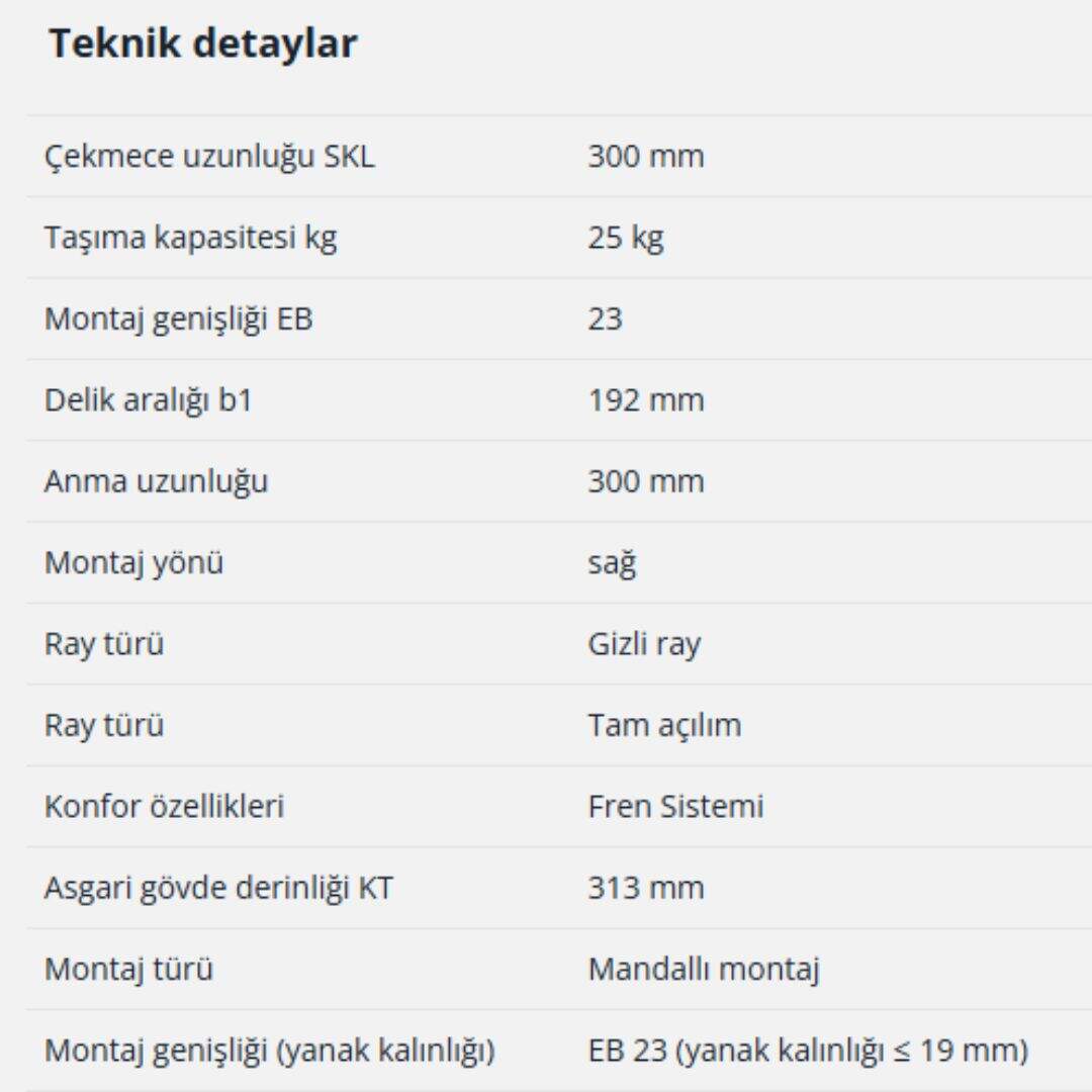 - Yanak kalınlıkları azami 19 mm olan çekmeceler için uygundur