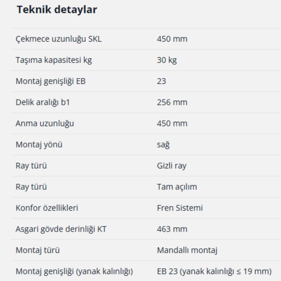 Hettich Quadro Tam Açılım Frenli Ray 45 cm Sağ (9225730)