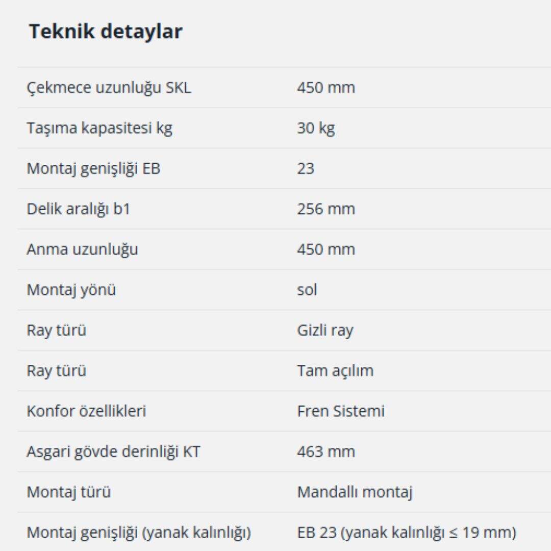 - Yanak kalınlıkları azami 19 mm olan çekmeceler için uygundur