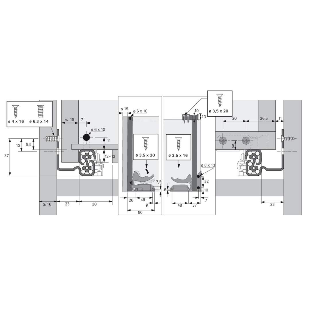 - Yanak kalınlıkları azami 19 mm olan çekmeceler için uygundur