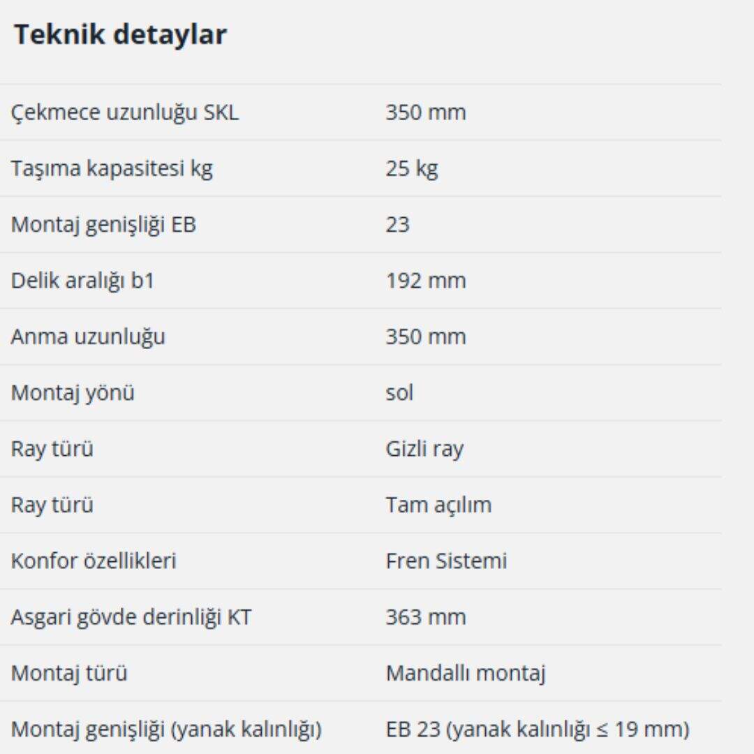 - Yanak kalınlıkları azami 19 mm olan çekmeceler için uygundur
