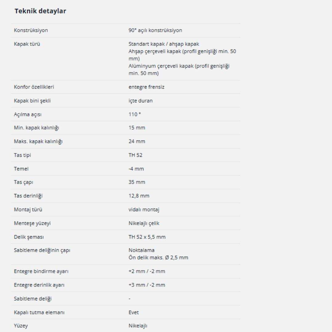 Hettich Sensys Frensiz Tam Deve Boynu Menteşe 110 Derece (9071261)