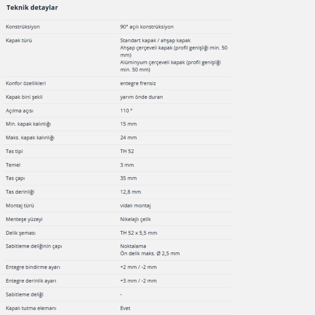 Hettich Sensys Frensiz Yarım Deve Menteşe 110 Derece (9071260)
