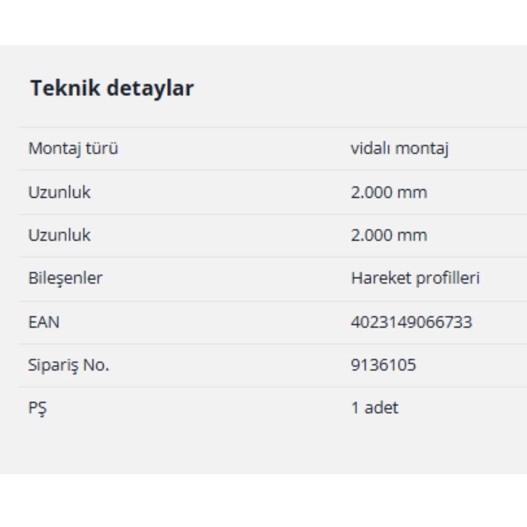Gelince Haber VerHettich SysLine S Vidalı Montaj Hareket Profili 2000 mm (9136105)