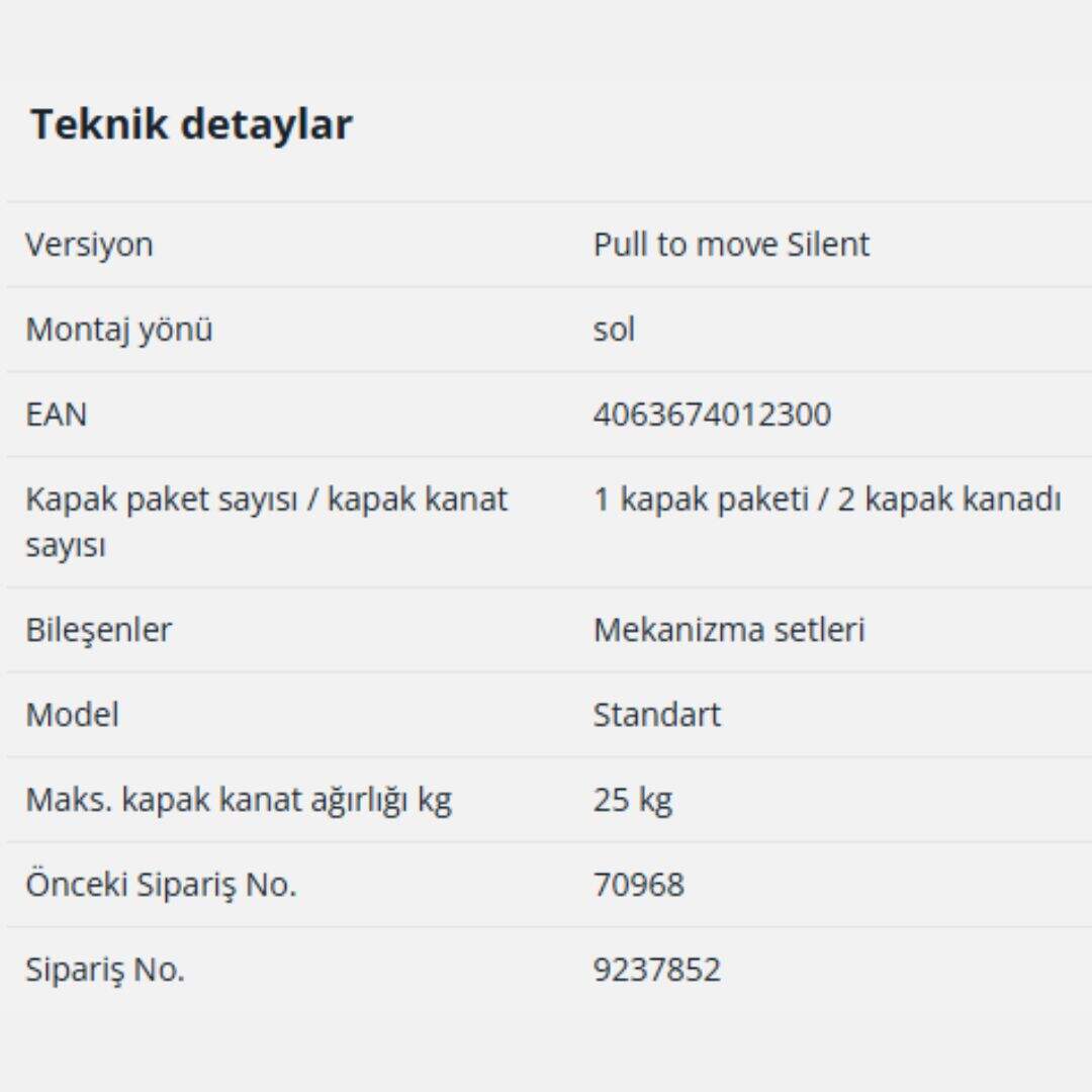 - Mekanizma seti, Pull to move Silent ile kombinasyonda kullanılır