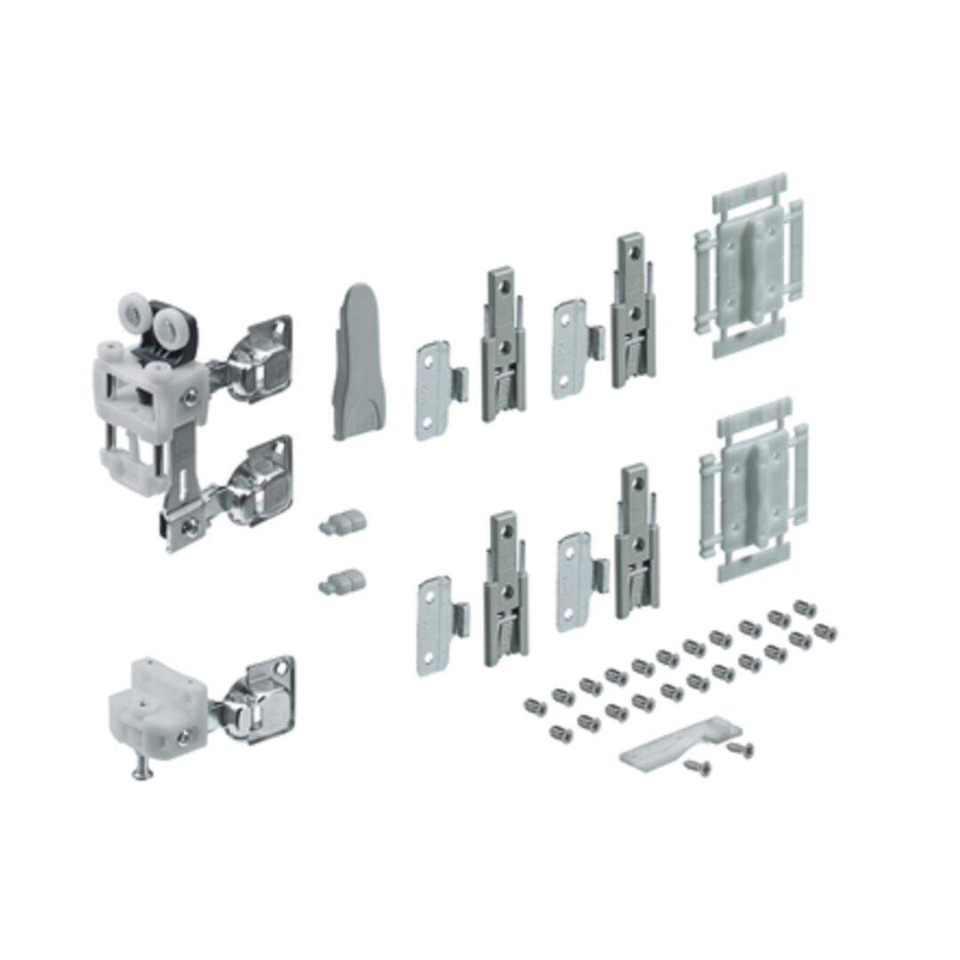 - Menteşe setinde, 1 adet 2 kanatlı katlanır sürgü kapak için gereken tüm parçalar bulunmaktadır