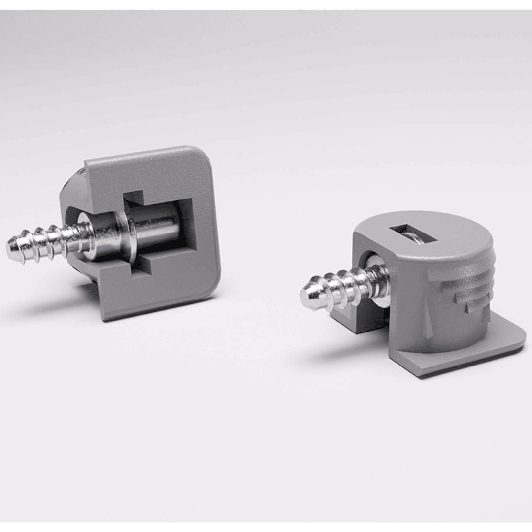 > Metal vida seçeneklerimiz: - Rafın yerini tekrar değiştirmeye uygun olarak 3 ve 5 mm’lik düz pim ve 5 mm özel uçlu vida. - 3 mm veya 5 mm Avrupa sistem vida. - Dübelli M4 vida.