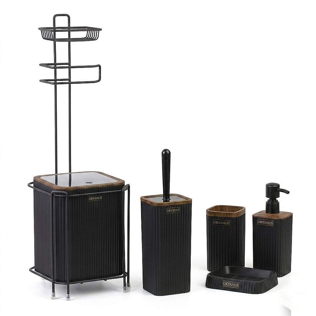 Banyonuzda modern bir değişim yaratmak ister misiniz? Kosova Kare 6’lı Banyo Seti (OKY-1801), ahşabın sıcaklığını siyahın asaletle harmanlayarak banyonuza prestijli bir dokunuş katıyor. Sadece bir banyo aksesuarı değil, banyonuzun karakterini belirleyen bir tasarım objesi olan bu set, her detayında kaliteyi ve estetiği hissettiriyor.