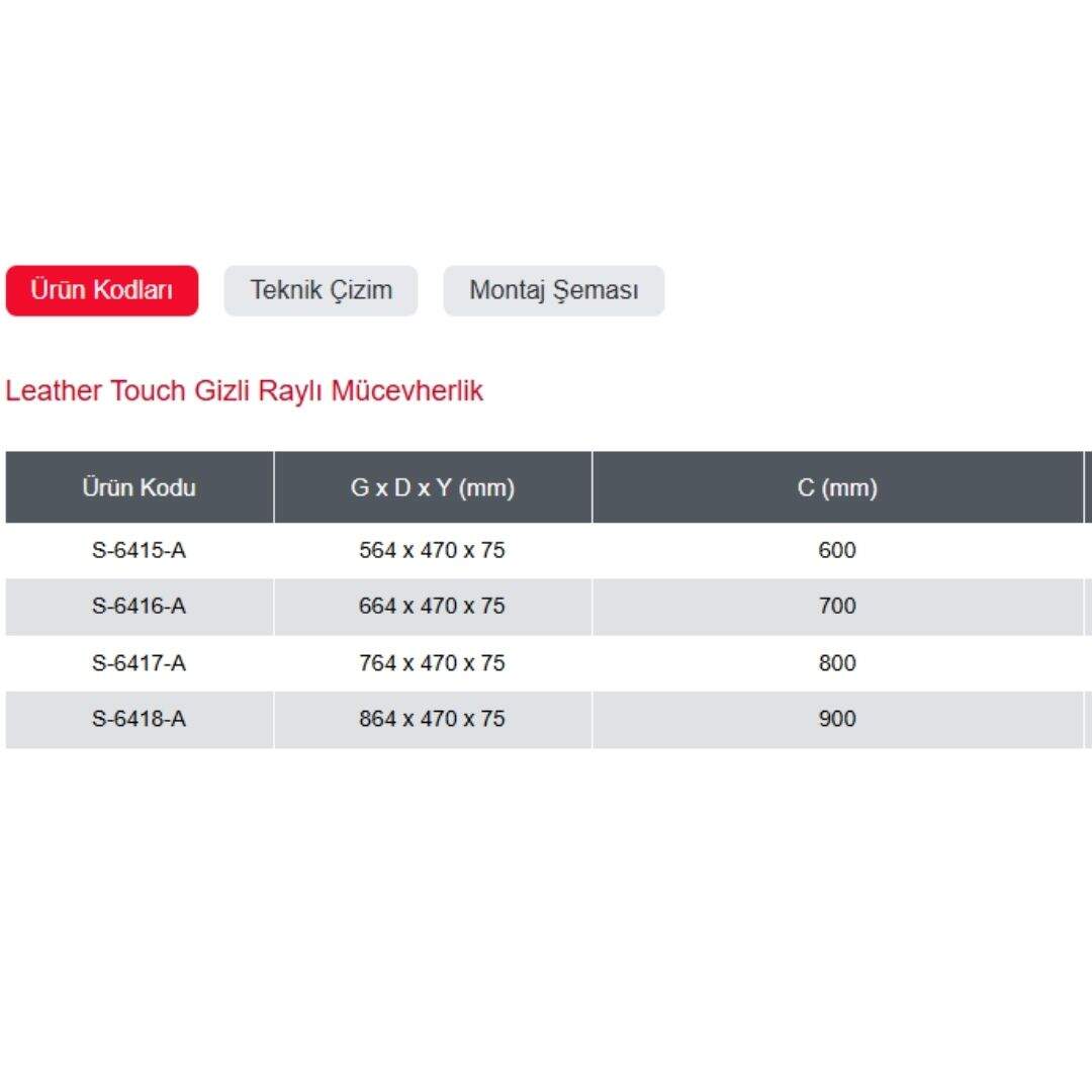 Starax 60cm Leather Touch Gizli Raylı Mücevherlik Antrasit Renk (S-6415-A)