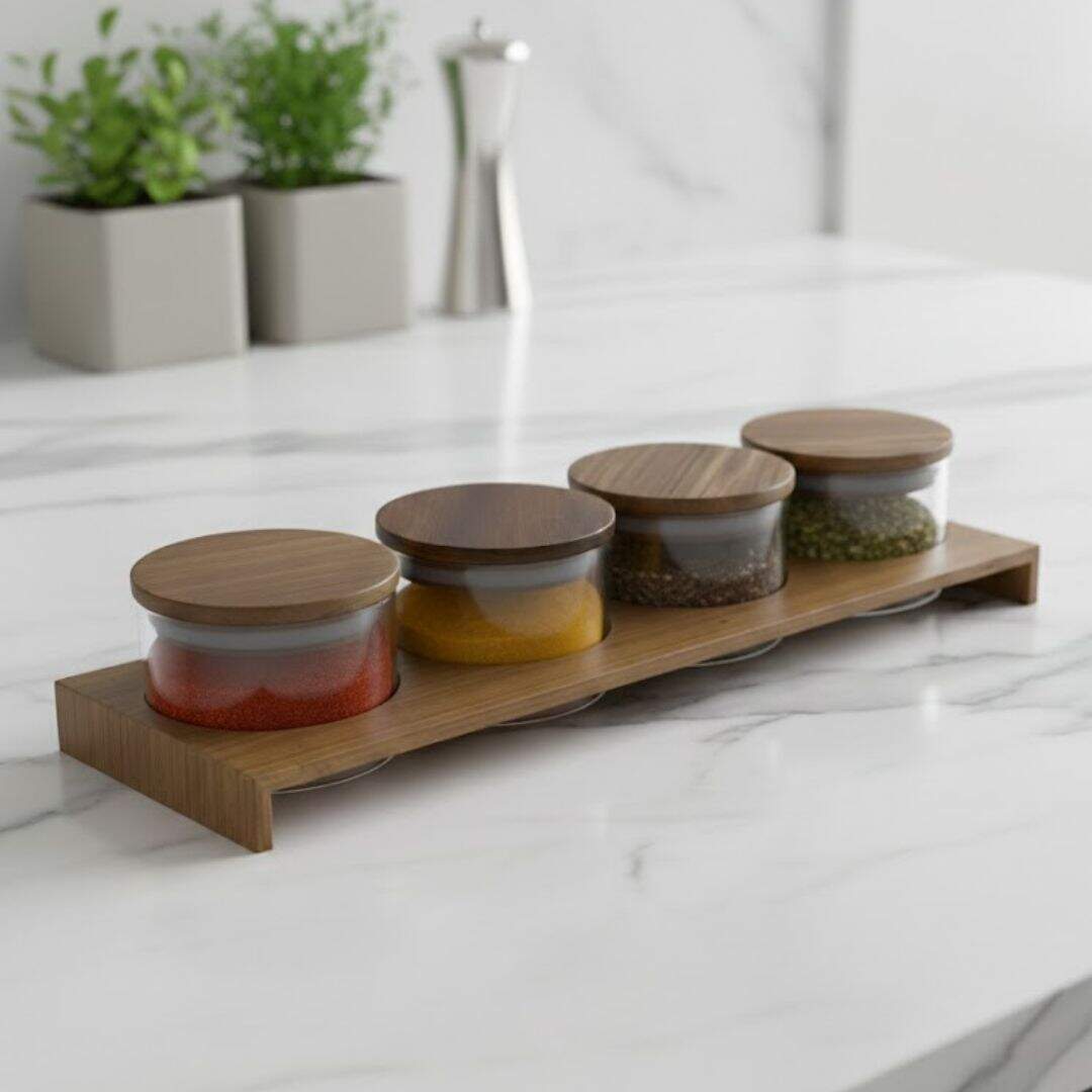 Pelikan Çekmece İçi Ahşap Baharatlık 4 Büyük Cam Kavanoz (C11012AD)