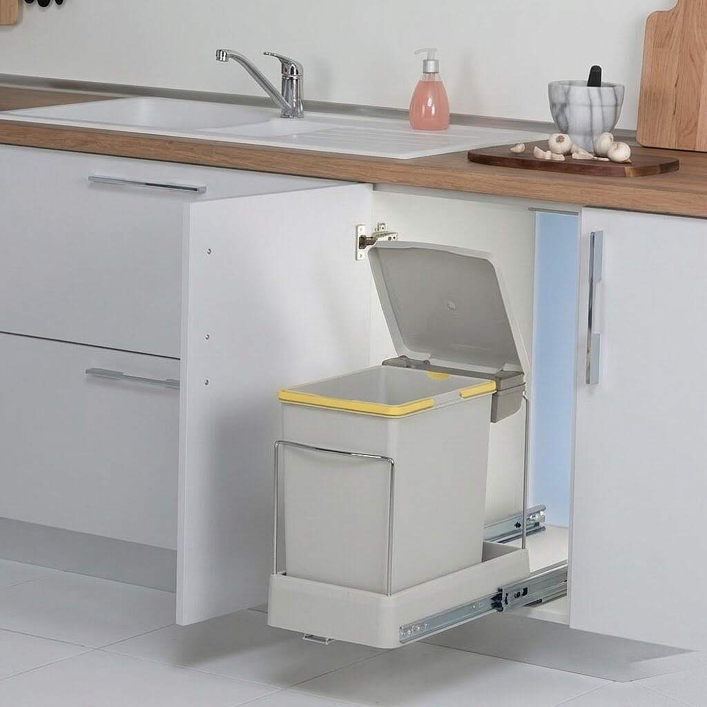 Stelly çöp kutusunu dolap kapağı ile hareket ettiren mekanizma fikri mülkiyet koruması altındadır, taklit edilemez.