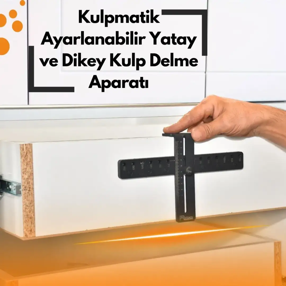 Kulpmatik Ayarlanabilir Yatay ve Dikey kulp Delme Aparatı dolap kulpları ve çekmece kulplarının montajını kolaylaştırmak için özel olarak tasarlanmış, yatay ve dikey olarak sağ ve sol yönlü tüm delik işlemlerini 0’dan 12 cm kadar tüm ölçülerde kullanılabilen pratik ve ayarlanabilir bir üründür. 32 mm’den 224 mm’ye kadar tüm kulp ölçülerinde 5 mm delik delme işlemini hassas bir şekilde yapabilirsiniz. Sert metal yapısı ile delik yuvalarından genişleme olmaz.Bu ürün, hassas ölçümlerle profesyonel sonuçlar elde etmenizi sağlar. Hem amatör hem de profesyonel kullanıcılar için ideal olan bu aparat, kapak ve dolap montaj işlemlerini hızlı ve zahmetsiz hale getirir. Farklı boyutlardaki dolap,kapak ve çekmece kulplarını kolaylıkla ayarlanabilirsiniz. Yüksek kaliteli metal yapısıyla uzun ömürlü kullanım sağlar. Doğru delik yerleşimi için mükemmel bir kılavuzluk sağlar, böylece profesyonel sonuçlar elde edebilirsiniz.