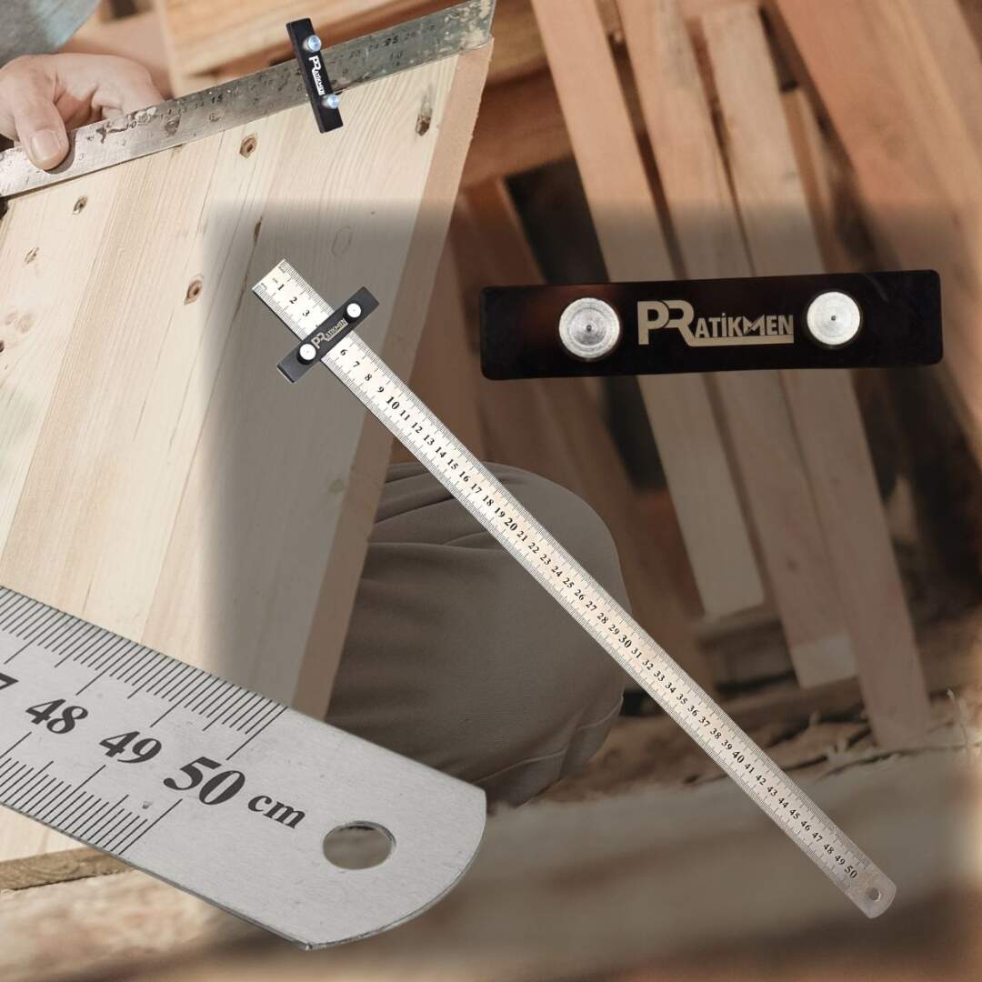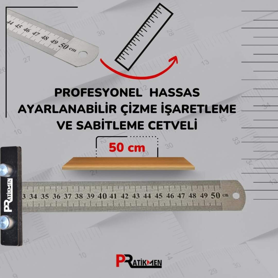 Gelince Haber VerPratikmen Profesyonel Hassas Ayarlanabilir Çizme, İşaretleme ve Sabitleme Cetveli 50 cm (SL0524)