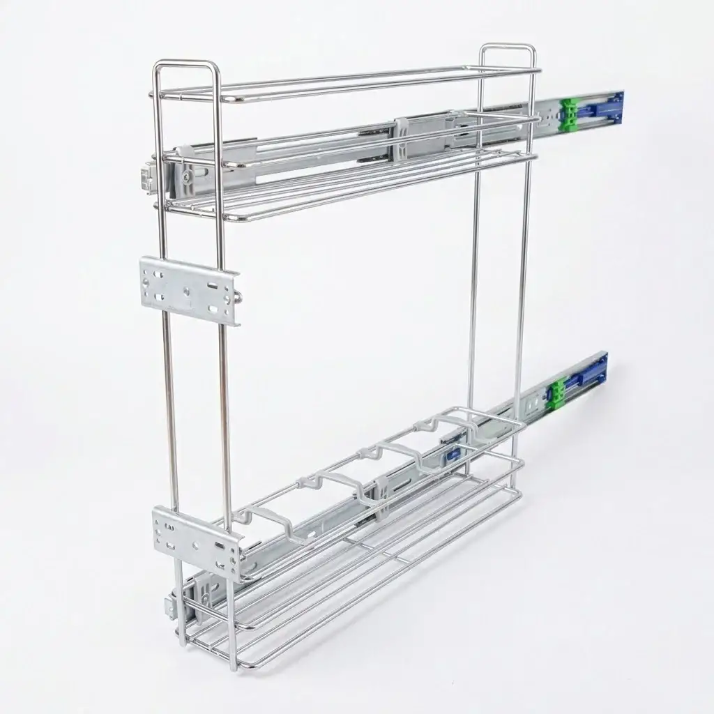Kompakt Tasarım: 15 cm genişliğindeki dar dolap modülleri için özel olarak üretilmiştir. Yağ, sirke, sos şişeleri ve uzun baharatlıklar için en verimli saklama alanıdır.