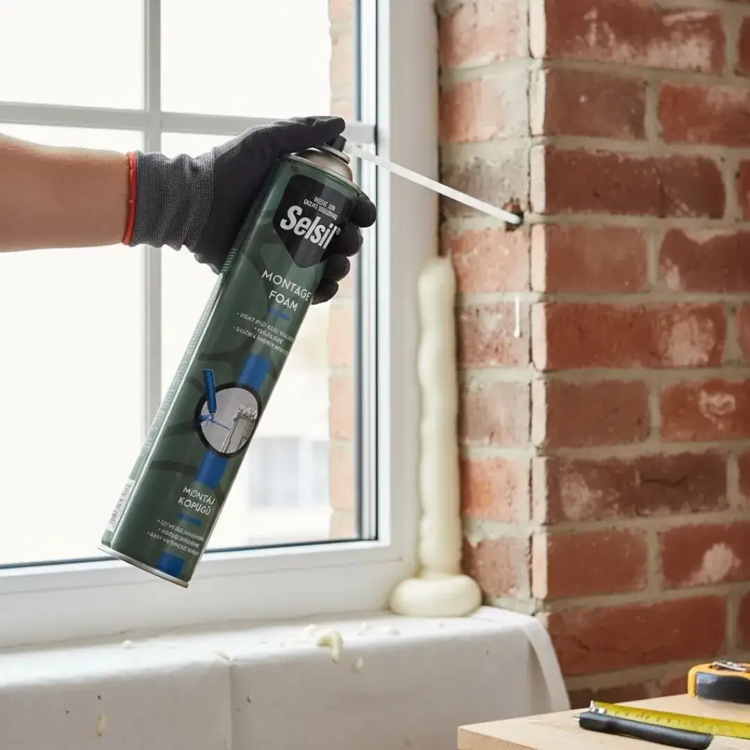 Selsil Montaj Köpüğü, poliüretan bazlı havanın nemiyle sertleşen tek komponentli bir dolgu, yalıtım malzemedir.