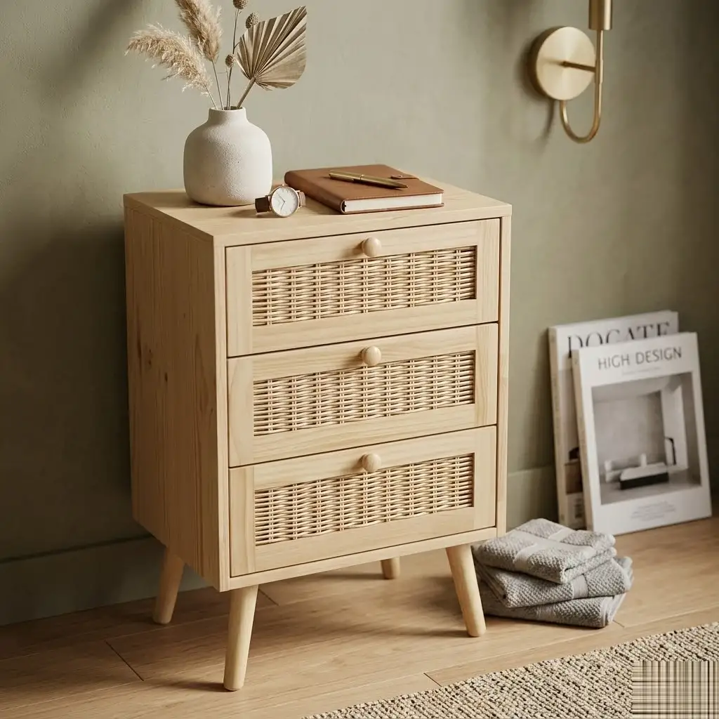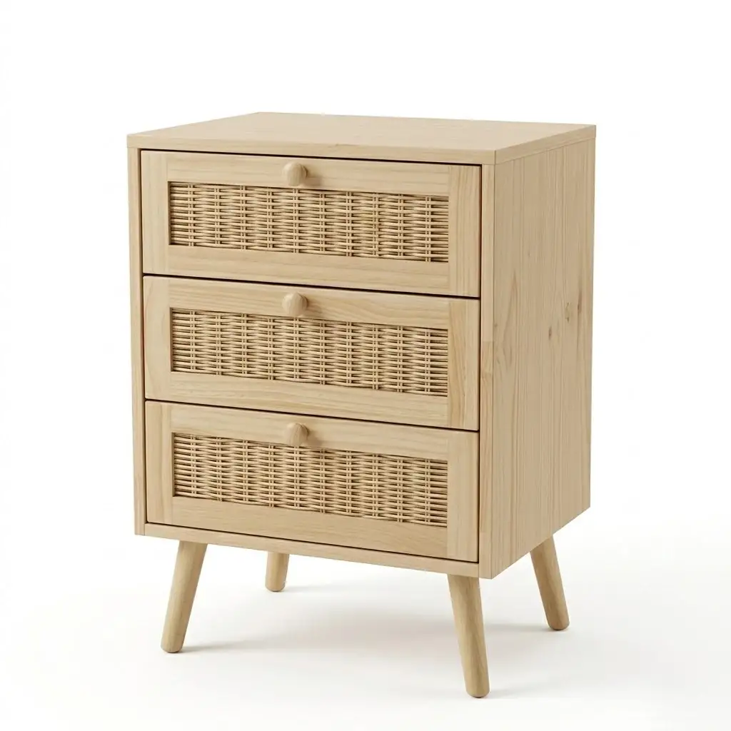 Evinizin her köşesine şıklık ve pratiklik katacak olan Sese 3 Çekmeceli Düzenleyici Dolap, doğal ahşap dokusu ve zarif hasır detaylarıyla yaşam alanlarınızı güzelleştirir. Kompakt tasarımı sayesinde dar alanlarda maksimum depolama alanı sunarken, modern ve bohem tarzı bir araya getirir.