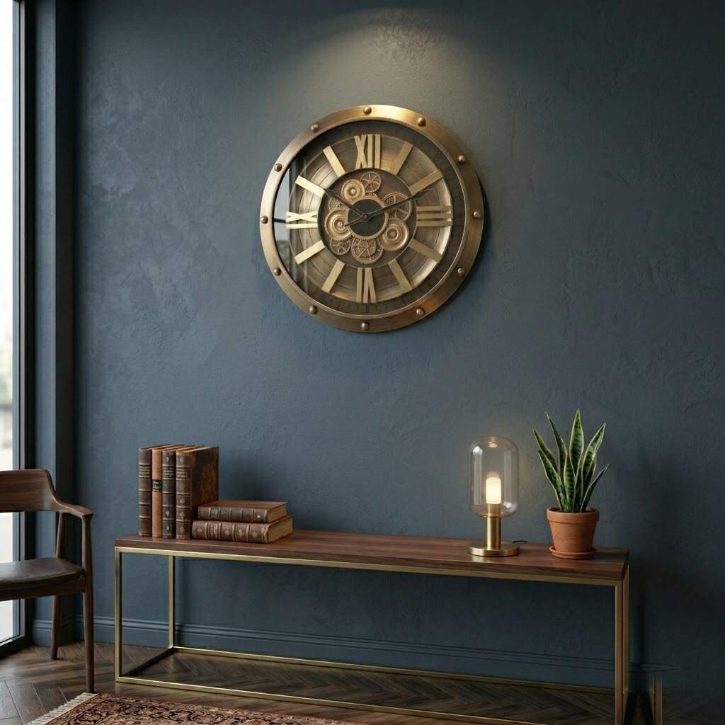 Hareketli Çark Tasarımı: İç kısmında bulunan dekoratif çark detayları, saate dinamik ve sofistike bir hava katar.