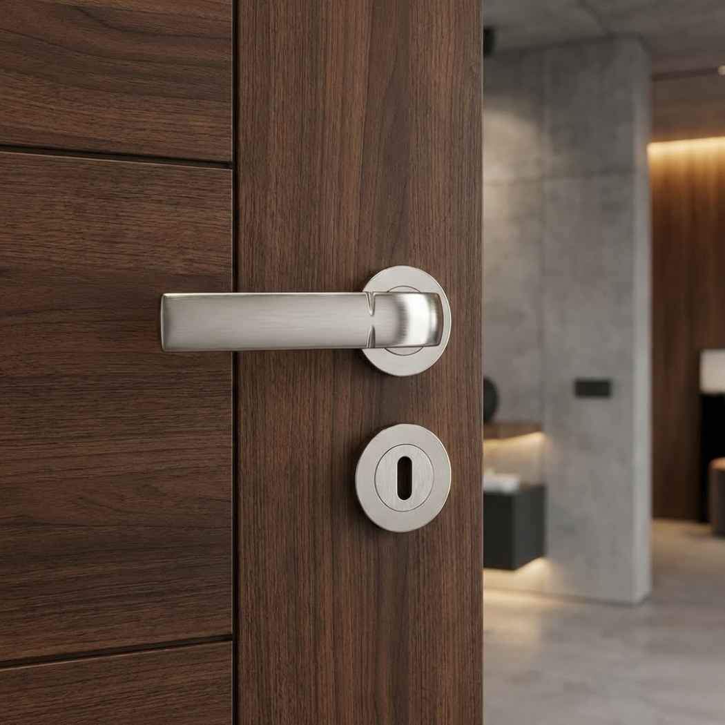 Gelince Haber VerSese Cansu Modeli Yuvarlak Rozetli Ekonomik Kapı Kolu Nikel Saten (200-96R-21/53)