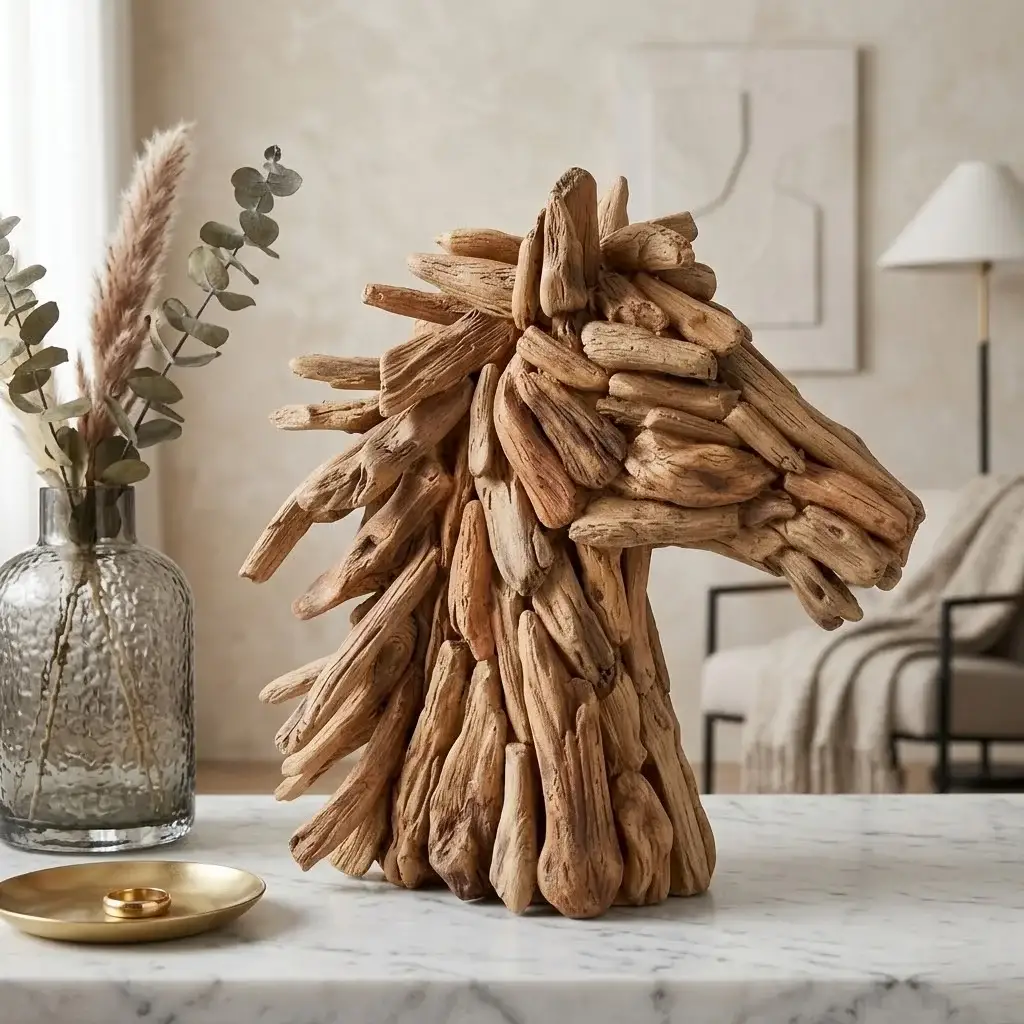 Doğanın vahşi ve asil ruhunu yaşam alanlarınıza taşıyın! Sese Ahşap Görünümlü Polyester At Figürü, ustalıkla tasarlanmış kıyı odunu (driftwood) dokusuyla mekanlarınıza hem rustik hem de modern bir sanat eseri havası katar. Polyesternin uzun ömürlü ve dayanıklı yapısı, doğal ahşap görünümünün sıcaklığıyla bu eşsiz tasarımda buluşuyor.