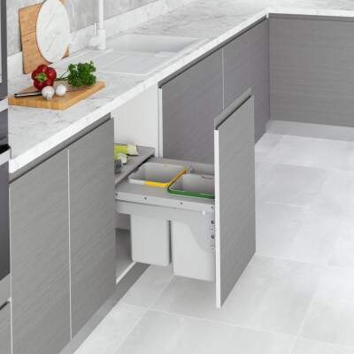 Starax’ın çekmece içine entegre edilebilen çöp kovaları, mutfak dolaplarıyla tam uyumlu olacak şekilde tasarlanmıştır. Bu sayede hem alan tasarrufu sağlar hem de çöp kovasının görünürlüğünü ortadan kaldırarak daha temiz ve düzenli bir görünüm elde edilmesine yardımcı olur.