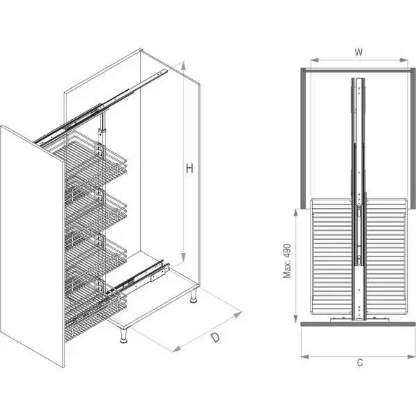 • Taşıyıcı mekanizma ve izleyicide bilyalı teleskopik ray kullanılmıştır.