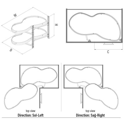 Starax Döner Tablalı Kör Köşe Mekanizması Sol Fasulye Frenli Krom Modül 45cm (S-3013-C)