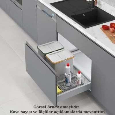 Gelince Haber VerStarax Çekmece İçi Taşınabilir Sepetli Manuel Çöp Kovası 24+3 Litre Gri 80cm (S-2553-G)