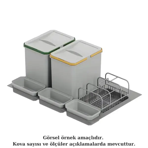 Gelince Haber VerStarax Çekmece İçi Taşınabilir Sepetli ManuelÇöp Kovası 24+3 Lt Gri 90cm (S-2563-G)