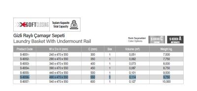 Gelince Haber VerStarax Gizli Raylı Çamaşır Sepeti Frenli Krom Modül 55cm (S-8056-C)