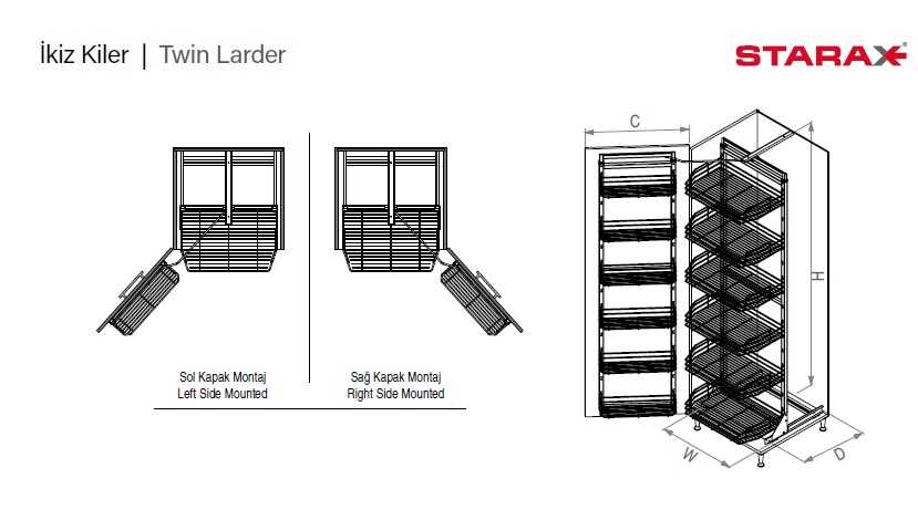 Starax İkiz Kiler, mutfağınıza düzen ve işlevsellik katmak için tasarlanmış bir depolama çözümüdür.